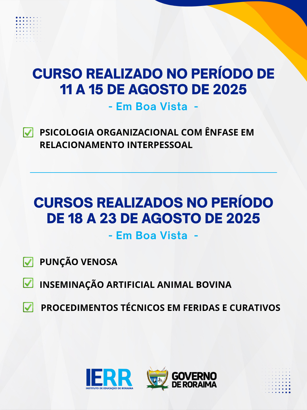 Na última sexta-feira (15/08), o Governo de Roraima, por meio do Instituto de Educação de Roraima – IERR, realizou a...