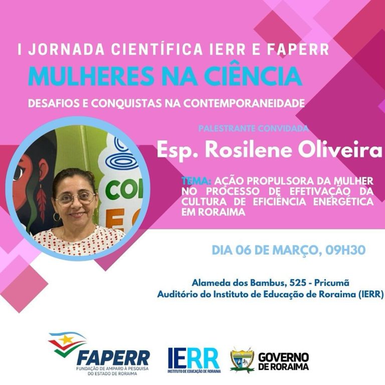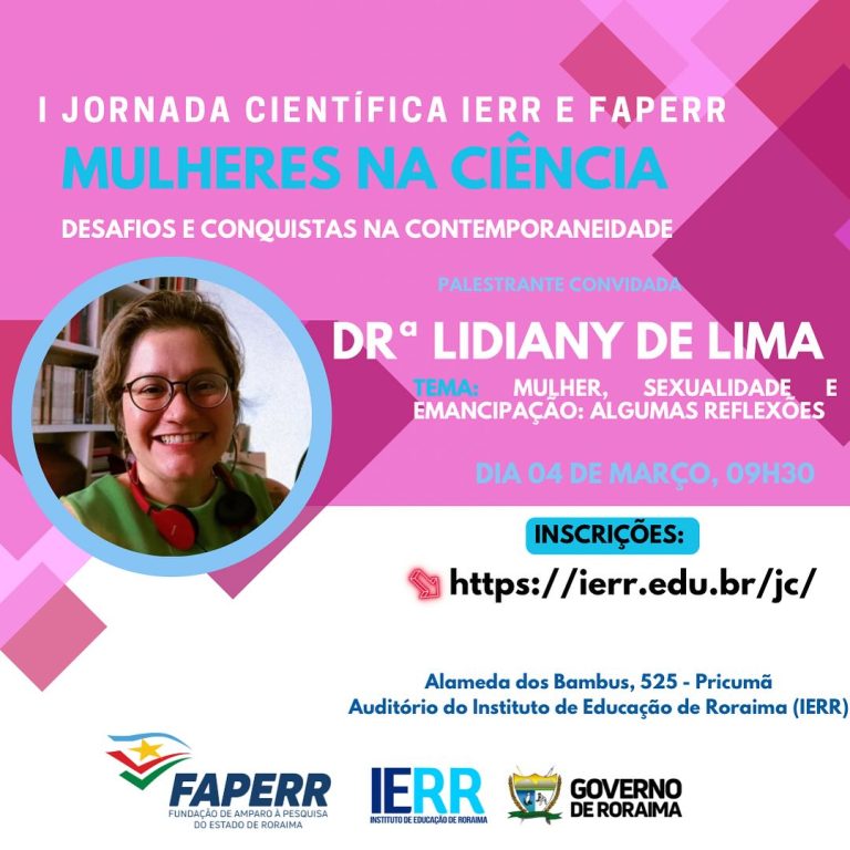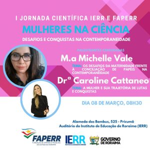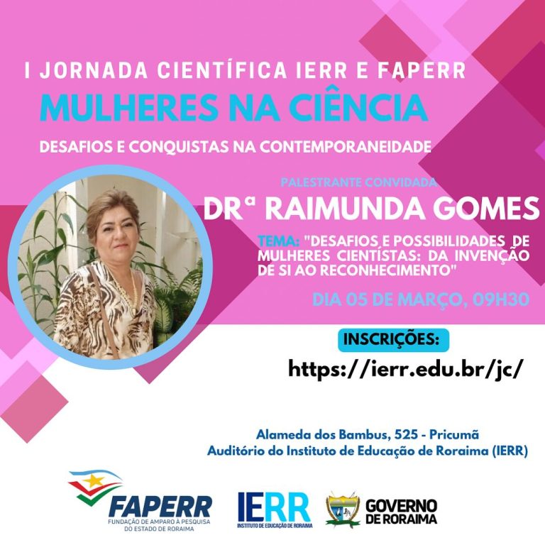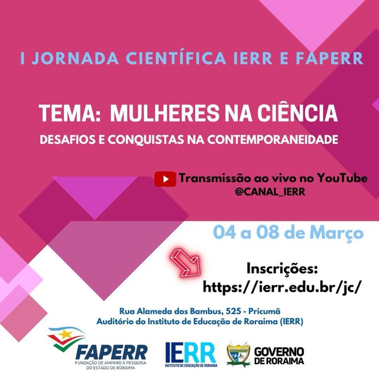 A I Jornada Científica do Instituto de Educação de Roraima (IERR) e da Fundação de Amparo A pesquisa (FAPERR) teve como tema central Mulheres na Ciência: Desafios e Conquistas na Contemporaneidade. Durante o evento, foram discutidas questões relevantes sobre a presença e atuação das mulheres no campo da ciência, destacando os desafios enfrentados e as conquistas alcançadas ao longo do tempo.